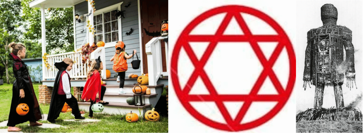 Če se vrnemo k heksagramu oz. hexagramu, potem vidimo, da je sorodna besedi hexe, kar pomeni ”prakticiranje čarovništva” in izvira iz nemške besede hexen, ta pa iz hagazzusa, kar pomeni ‘‘odvratna starka”. Samostalnik zapisan leta 1909 pomeni ”magični urok”, pred tem pa je pomenil ”čarovnica”. V srednjeveški angleščini je beseda hexte pomenila ”hudič”, mogoče izvorno tudi ”čarovnik”. Tako je Hallowen oz. Noč čarovnic obravnavan kot praznik čarovnic. Prav zaradi tega je Samhain oz. Sauin najpomembnejši praznik čarovnic, satanistov oz. globalne elite. Predstavlja križišče med starim in novim letom. V okultnem svetu so vsa križišča poti sveta, zato so na teh mestih večkrat opravljali žrtvovanja. Poznavalci okultnega se zavedajo, da se v tem času svet umrlih približa svetu živih, oz. prehod med 3. in 4 dimenzijo se stanjša. Tako lahko demonska bitja in duše umrlih lažje prehajajo v naš svet. V namen kontrole teh demonskih bitij so druidi nosili grozljive maske in halje popisane s simboli. Danes to predstavljajo kostumi. Anton LaVey, ustanovitelj Cerkve Satana je razglasil, da z oblačenjem, ali z nošenjem kostuma ali barvanjem obraza pri praznovanju Noči čarovnic, to označuje dovoljenje Satanu, da si vas lasti. Ko si oblečete kostum spremenite svojo identiteto, nase ali na svojega otroka poveznete duha entitete oz. lika. S tem dajete dovoljenje demonskim entitetam, da se duhovno žrtvujete entitetam temnih sil. Nadalje je rekel, da ko posvojite poganske prakse, vi podzavestno posvetite sebe hudiču. Sam se je veselil kristjanov, ki se udeležujejo tradicije, in rekel: ”Vesel sem, da krščanski starši dovolijo svojim otrokom, da vsaj eno noč v letu častijo hudiča. Dobrodošli na noč čarovnic.”