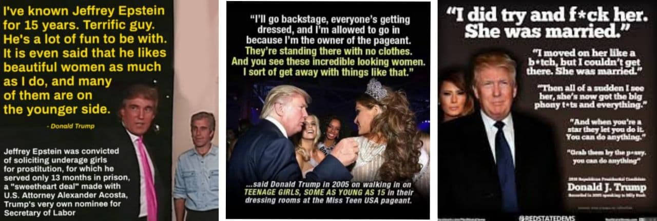 Samo 10 let nazaj bi se vam smejali, če bi trdili, da bi lahko Donald Trump, znan kot nepotistični narcis z zgodovino bankrotov, davčnimi prevarami in po zabavah s pedofili, ki se je odprto bahal glede spolnega nadlegovanja, postal predsednik ZDA in imel goreče privržence po vsem svetu. Trumpa je za spolno nasilje obtožilo veliko število žensk. Ena izmed njih ga je obtožila, da jo je skupaj z Epsteinom posilil ko ji je bilo 13 let. Tožba je bila umaknjena, domnevno zaradi groženj, ki jih je prejela. Glede na omenjeno, bi morala njegova predsedniška kampanija ustvariti popolnoma novo alternativno resničnost.