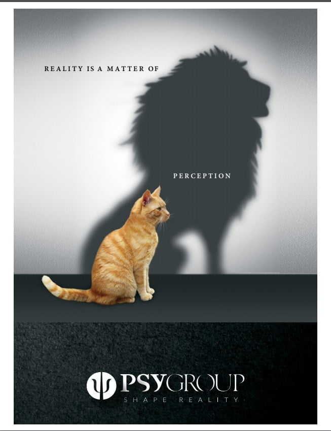 Med tem ko mnogi mislijo, da so psihološke operacije le domena vojske in obveščevalnih skupin, pa sedaj zanjo obstaja celoten prostor za komercialno industrijo. Psy Group je izraelsko podjetje, ki ga je ustanovil Joel Zamel in je specializirano za upravljanje spletnega zaznavanja z manipulacijo na družbenih omrežjih, vplivanjem na kampanije, raziskavo opozicij, pa tudi tajne dejavnosti na terenu. Aprila 2016 je Rick Gates, ki je delal s Paulom John Manafortom Jr. in bil ovaden zaradi obtožb povezanih s svetovanjem proruskim političnim figuram v Ukrajini, ter uradnik v Trumpovi ekipi, vprašal Psy Group za ponudbo. Odzvali so se s ceno 3.125.000 dolarjev poleg stroškov za medije. Ob tem so obljubili, da bo njihovo delo praktično neizsledljivo.